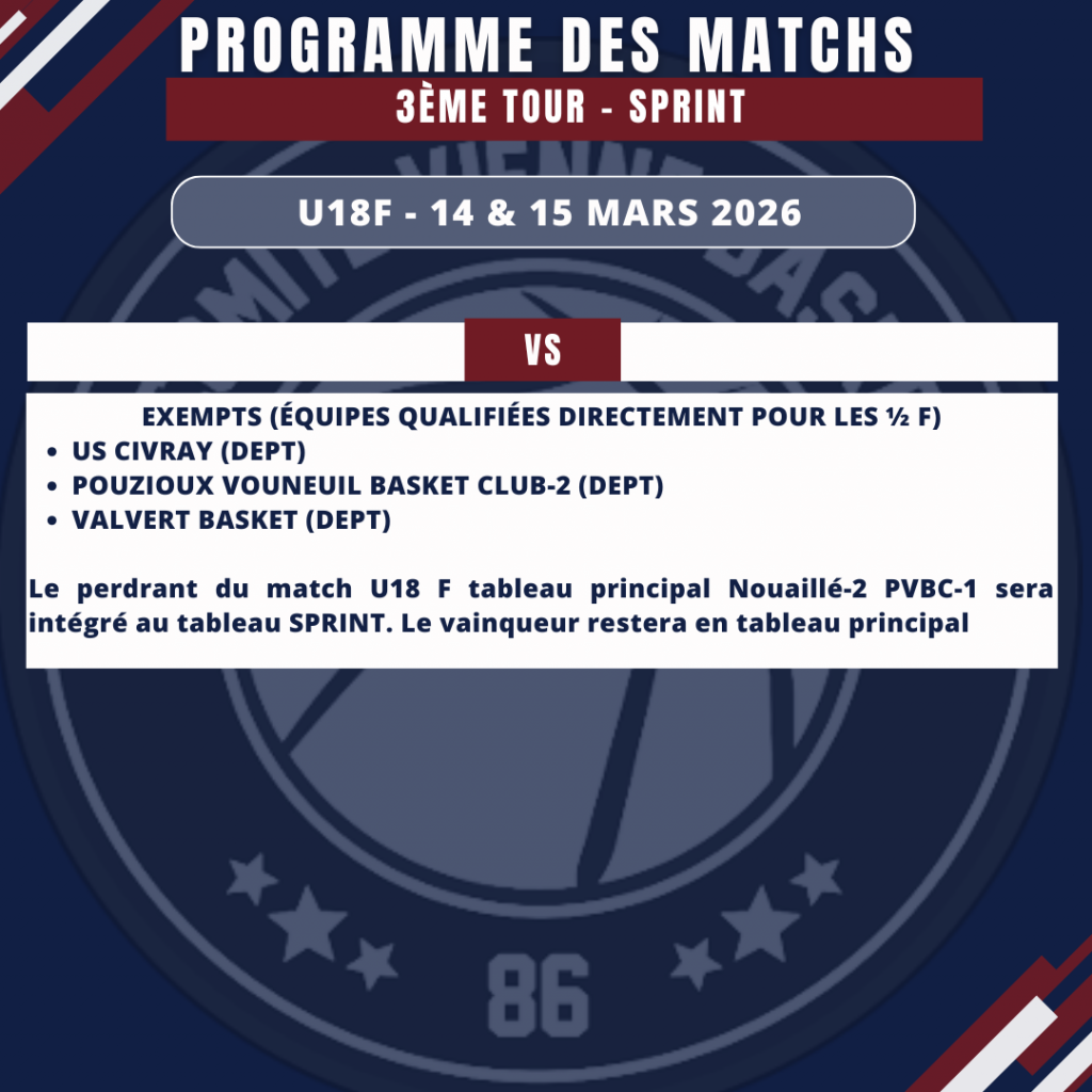 PROGRAMME DES MATCHS - 3ÈME TOUR